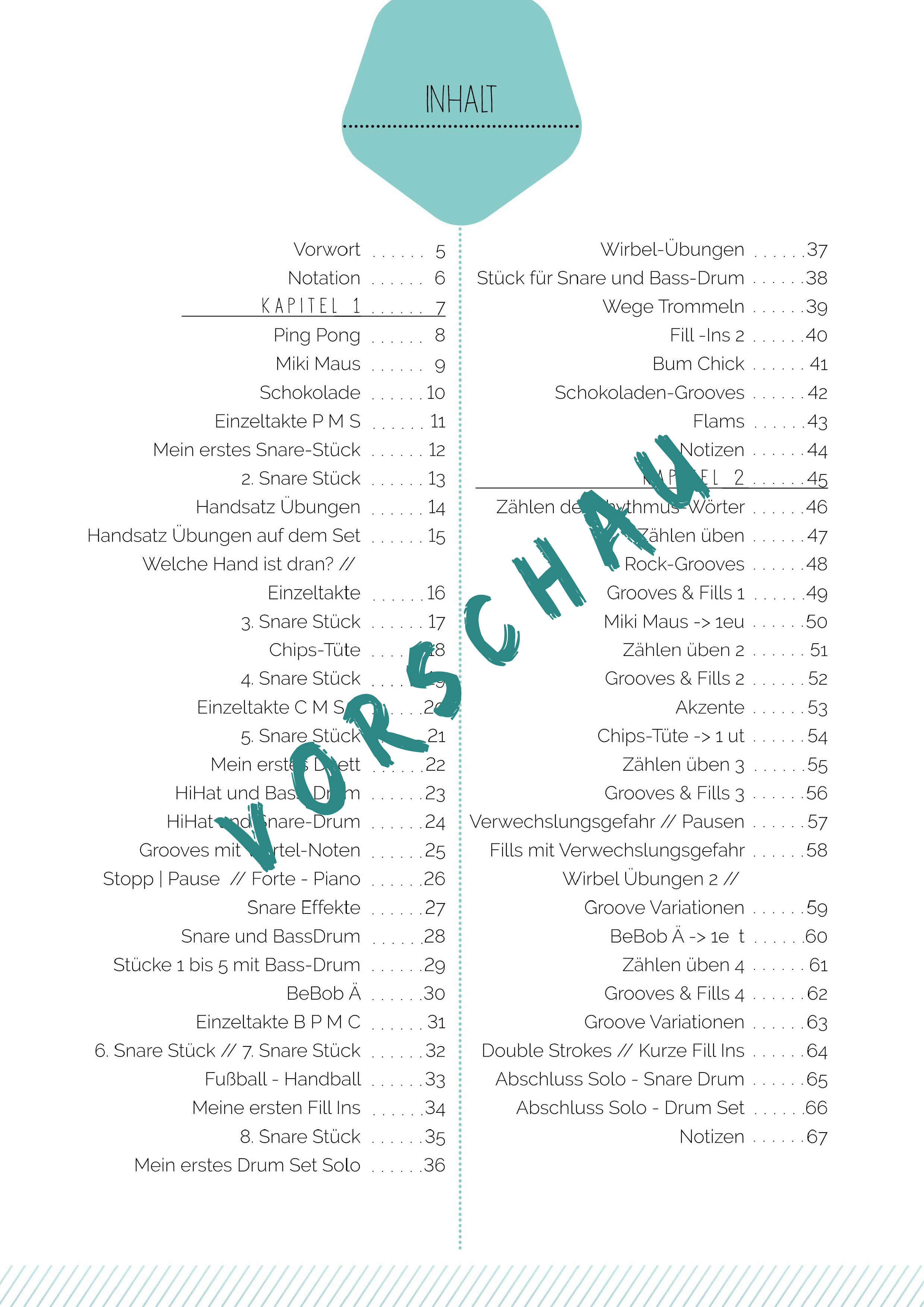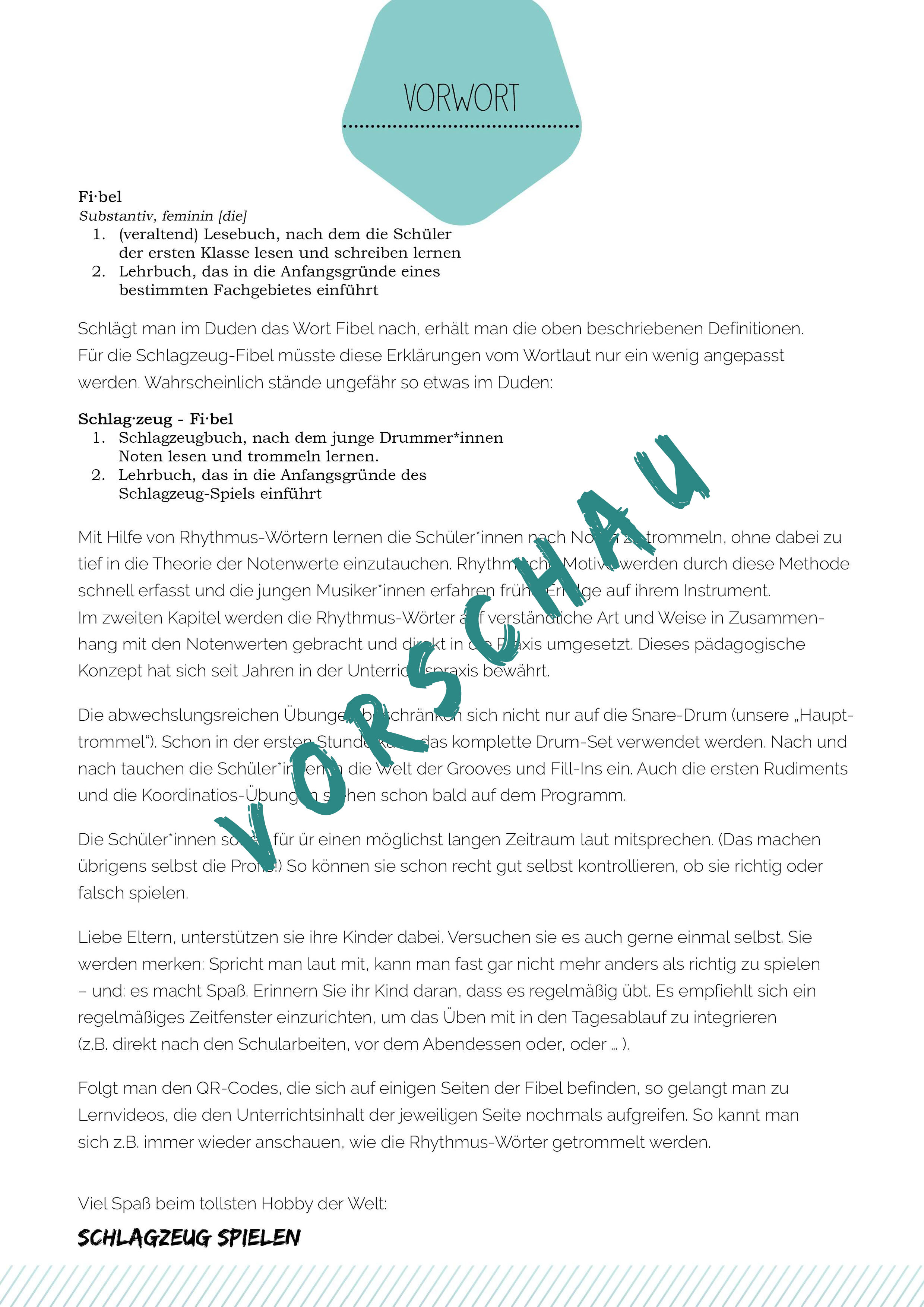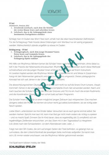 Hier bekommt ihr einen kleinen Einblick in die Schlagzeug-Fibel.